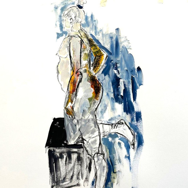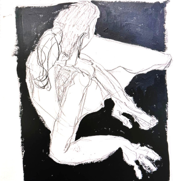 Zunächst entscheide ich, ob das Werk eine Zeichnung oder ein Gemälde wird, und wähle das passende Trägermaterial – Leinwand, Papier oder ein anderes Medium, das die Wirkung des Werks prägt. Danach entsteht die Komposition. Ich skizziere Entwürfe und experimentiere mit Proportionen, Formen, Licht und Schatten, bis die Grundstruktur steht. Diese Phase ist wie das Legen eines Fundaments – präzise, aber offen für spontane Eingebungen.